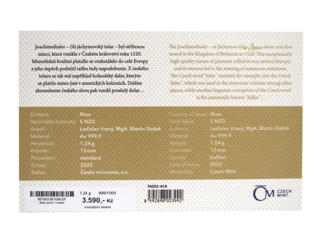 Zlatá investiční mince 1.24g