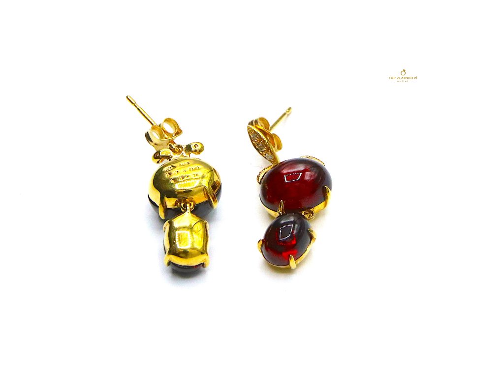 Zlaté náušnice s almandínem a diamanty 6.22g