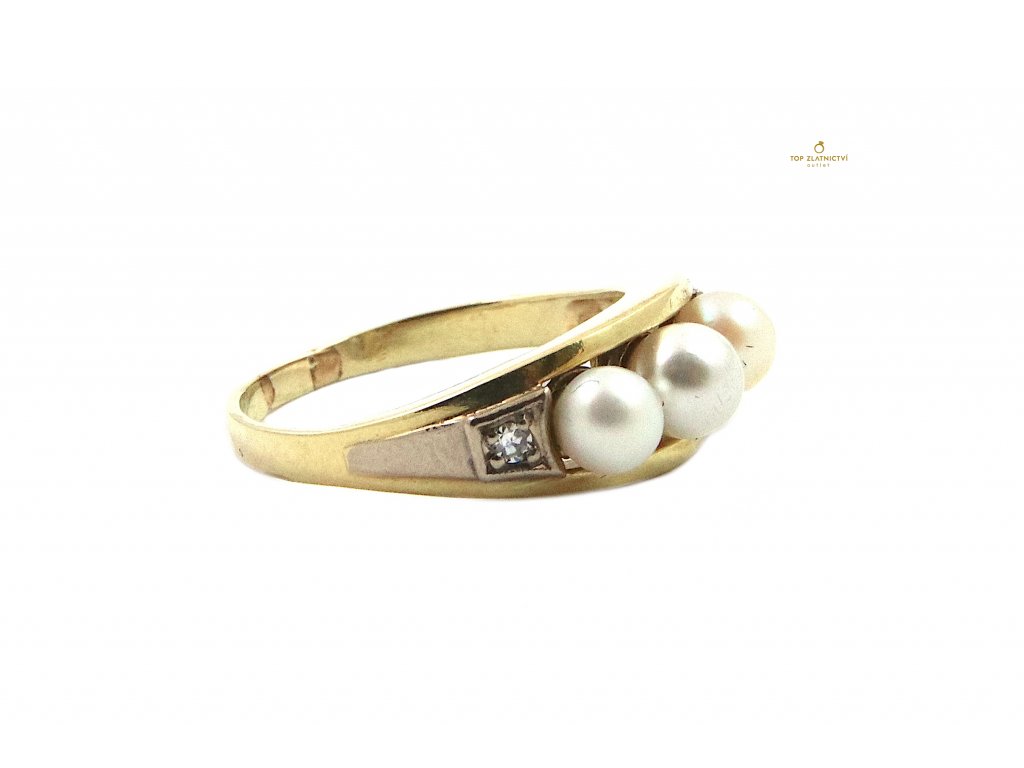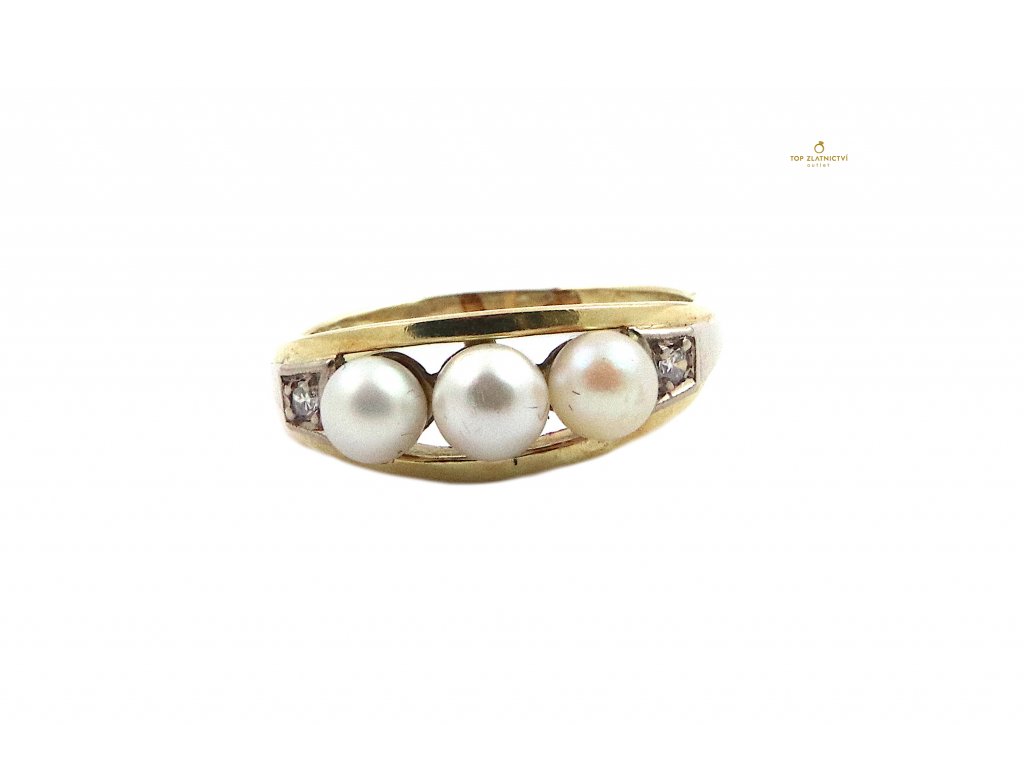 Zlatý prsten s diamanty a perlami 3.83g