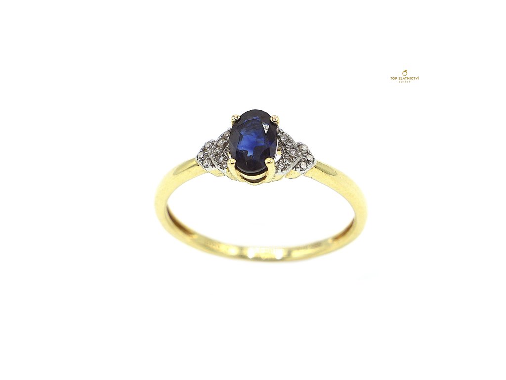 Zlatý prsten se safírem a diamanty 1.64g